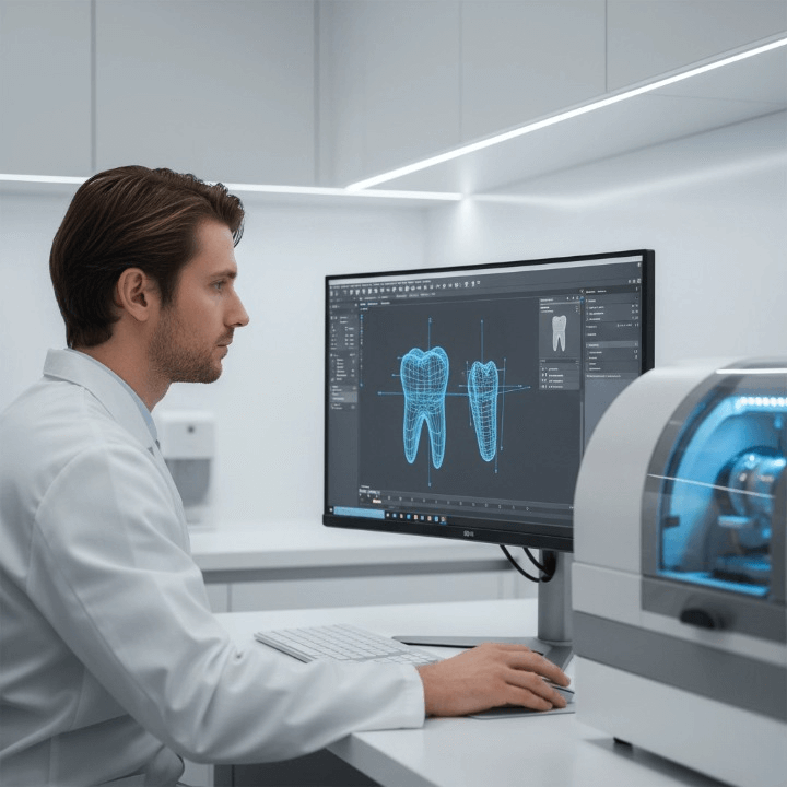 Our integrated digital workflow combines intraoral scans, digital wax-ups, and CT data merging. This ensures precise implant positioning, ideal occlusion, and a perfect emergence profile for every case.